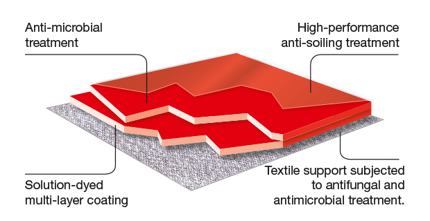 The Stamskin base cloth gives this composite material great flexibility, while ensuring its excellent deformation resistance. Watertight and solution-dyed, its multi-layer coating guarantees its durability and resistance to wear and tear.