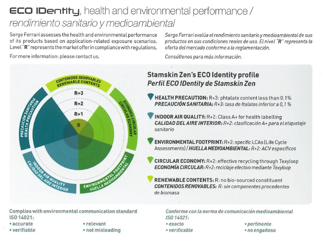 The Stamskin Zen range is Ökotex certified and meets cytotoxicity standards. Its phtalate-free formulation contributes to its excellent eco-identity assessment